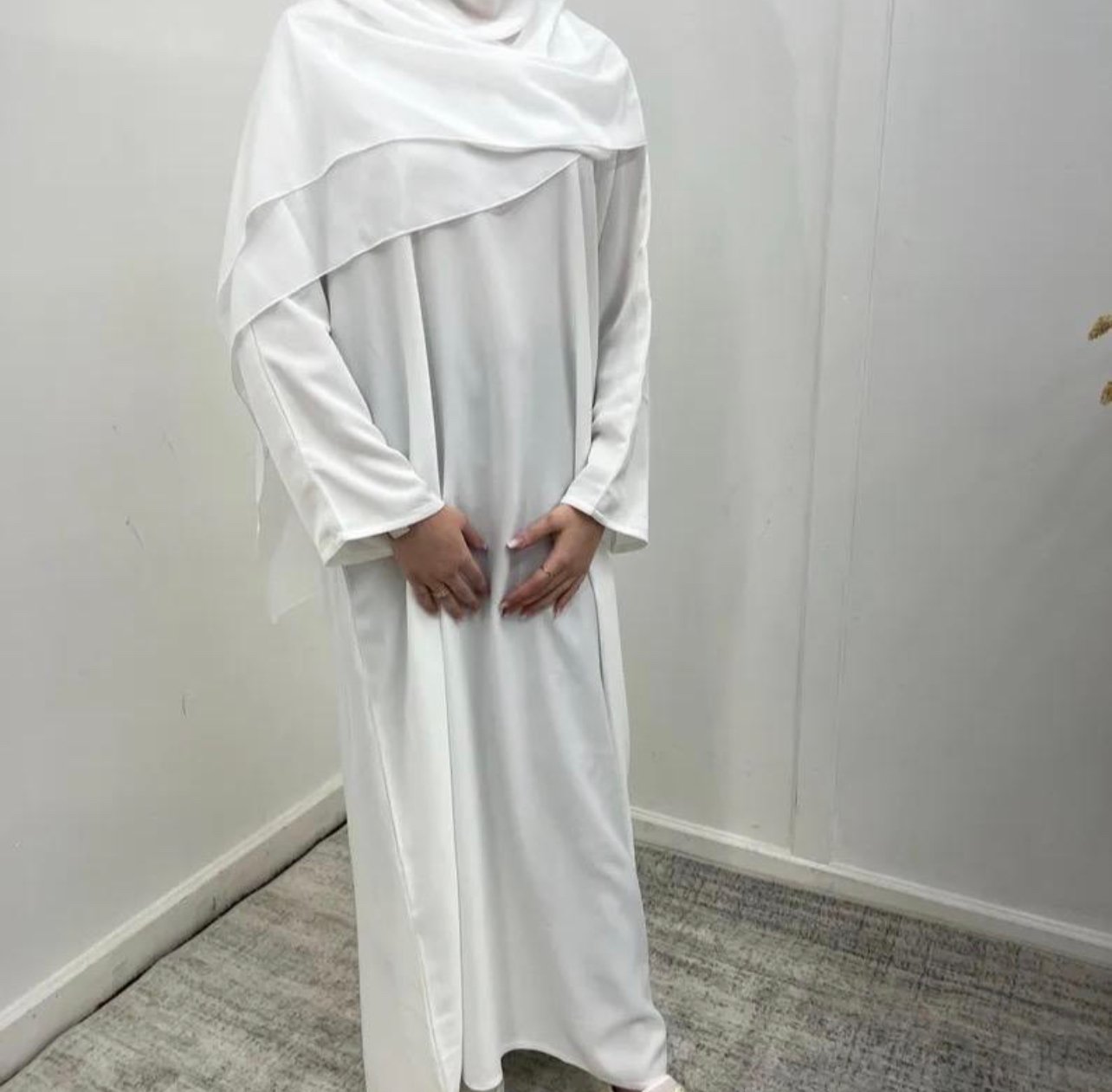 Plain White Abaya Front Closed in Nida Material for umrah and hajj